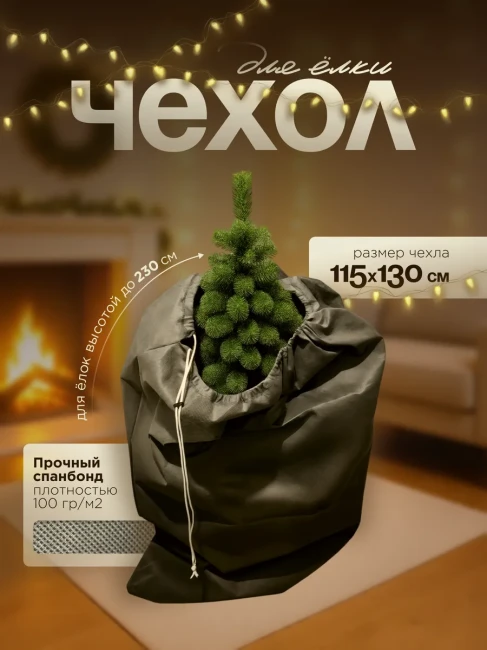 Наш чехол для елки 115х130 см - это универсальный мешок для хранения искусственной ели от 190 до 230 см и новогодних украшений. Прочная сумка для елки из спанбонда 100 г/м² надежно защищает от пыли, выгорания и влаги, обеспечивая ей идеальные условия до следующего Нового года. Этот хозяйственный мешок станет вашим универсальным помощником: используйте его как большой мешок для переезда, мешок для одежды или мешок для игрушек. Выдерживает нагрузку до 90 кг.