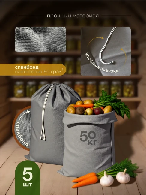 Эти многоразовые мешки для хранения - выгодная и практичная инвестиция, которая поможет поддерживать порядок и сохранять ваши вещи и урожай в безупречном состоянии.