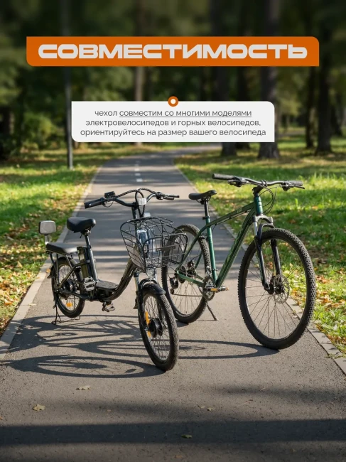 Данный аксессуар для электровелосипеда выполняет сразу несколько функций. Уличный чехол для велосипеда, надежно защитит технику, если вы оставили её на парковке или во дворе. Кроме того, это отличный вариант для хранение велосипеда в гараже или квартире - он убережет от пыли и царапин. Это идеальная защита электровелосипеда взрослого, оберегающая все элементы конструкции от внешнего воздействия.